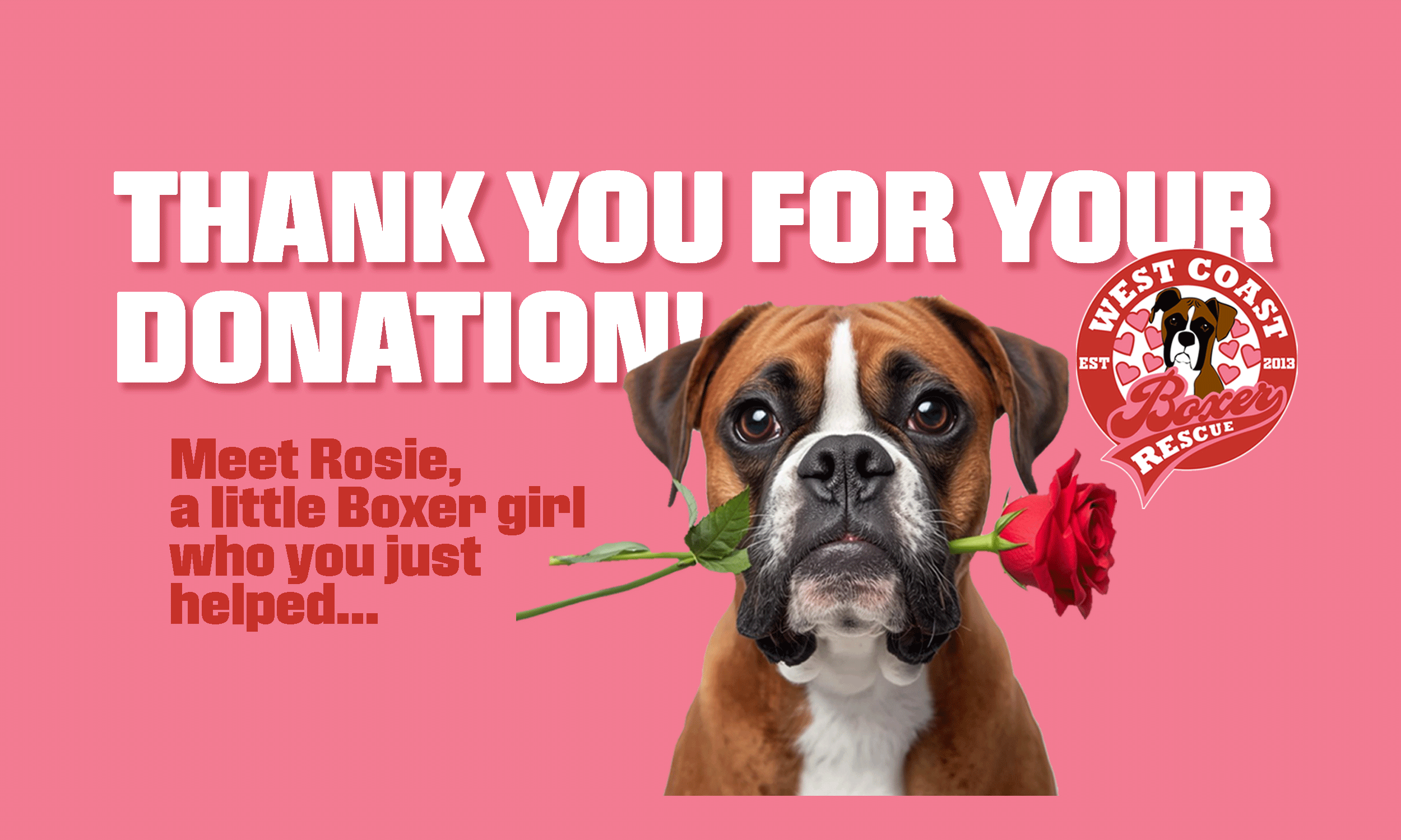 Rosie came to West Coast Boxer Rescue as an owner surrender in May of last year at just 11 months old. Despite her young age, she had already given birth to a single puppy—an early start to life that spoke volumes about the hardship she had endured before rescue.